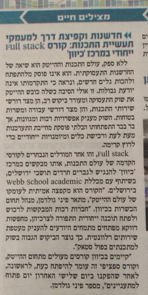 פני גולדמן מנהל אגף הכשרות במרכז כיוון לבקהילה על קורס Full stack-הייחודי במרכז כיוון